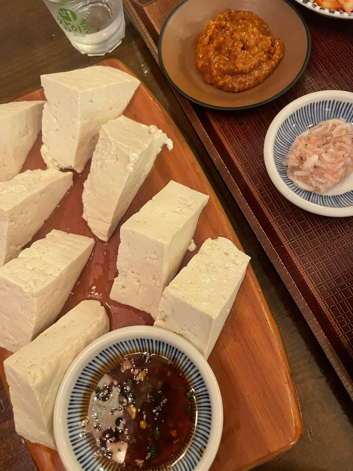 다음으로 나온 메뉴는 가마솥 생두부와 3종젓갈 , 요건 단품으로 먹어도 넘 좋을만큼 깔끔했어요. 100% 국내산 콩으로 만든 뜨끈뜨끈한 손두부와 명란, 낙지, 창난 세가지 젓갈의 조합은 맛없을 수 없는 조합이였어요. 평소에 생두부를 먹을일은 많지 않았는데 너무 폭신하고 부드러워서 계속 손이 갔답니다.