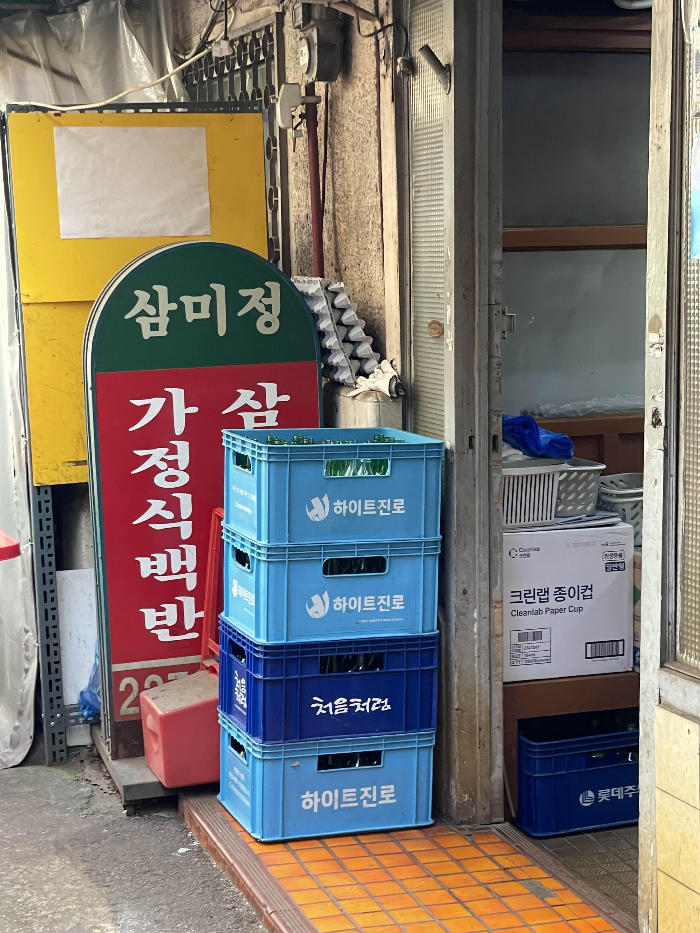 외관부터 노포감성 제대로인 을지로맛집 삼미정, 안쪽에도 앉을 공간이 많지만 사실 을지로 삼미정에 왔다면 무조건 야외에 앉아야 하지 않을까 싶어요? 저는 주말에 방문해서 사람이 많을까봐 걱정했는데 정말 다행스럽게도 저희가 1등이더라구요. 대기하지 않아도 되어 너무 좋고 생각했던것보다 분위기 가 훨씬 좋아서 더 만족스러웠어요.