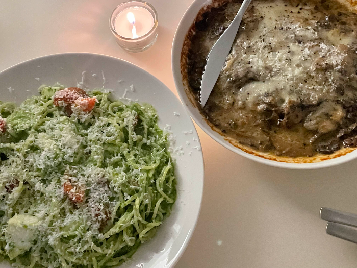 연남동 와인바 얍에서 주문한 메뉴는 바질페스토 파스타와 트리플머쉬룸 크림 라자냐입니다. 바질페스토 파스타는 깔끔한 맛이라 저한텐 좀 슴슴하다고 느껴졌고 4시간 푹 끓인 버섯크림을 이용한 트리플머쉬룸크림 라자냐는 진한 소스가 너무 맛있더라구요. 두 메뉴 궁합이 잘 맞아서 같이 먹기 딱 좋았답니다.