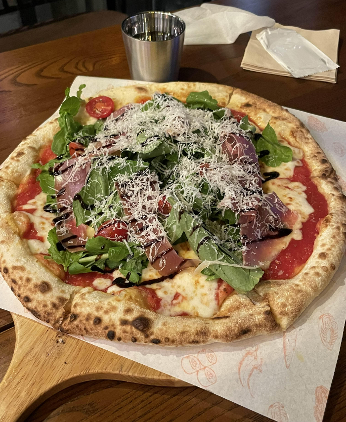 메뉴는 굉장히 다양했는데 저는 피자메뉴중에서도 프로슈토 루꼴라 선택했습니다. 비쥬얼 보니 너무 잘 선택한거같죠? 피자 사이즈는 큰 편은 아니였는데 오히려 둘이 먹기 딱 좋은 양이였어요. 도우도 쫄깃하고 토마토 소스와 모짜렐라 치즈 그리고 루꼴라가 적절히 조합이 잘 되어 맛있게 먹었답니다. 아쉬웠다는 건 전체적으로 제 입맛엔 조금 슴슴했다는 점? 그렇지만 비쥬얼도 좋고 맛나게 잘 먹었답니다.