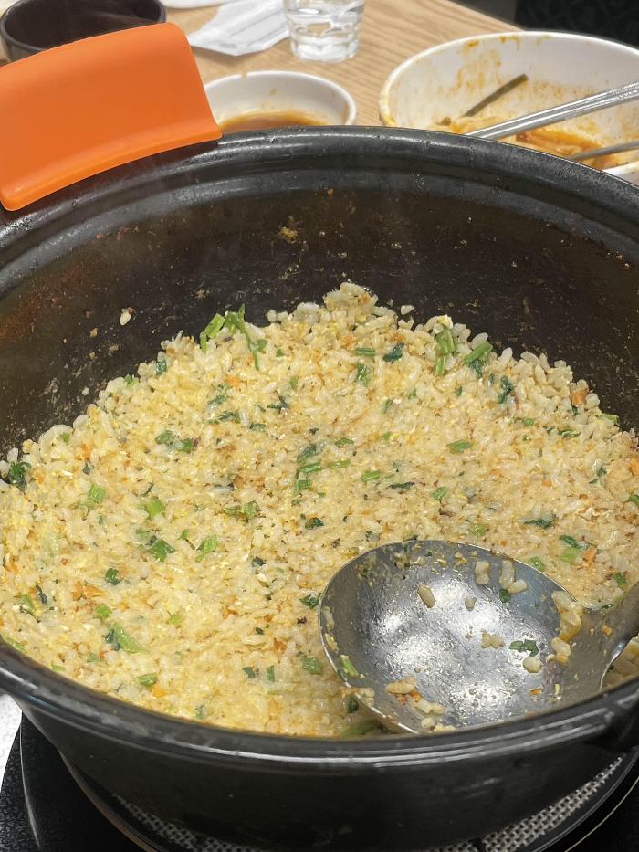 등촌샤브칼국수의 마무리는 볶음밥, 마지막까지 탄수화물은 놓칠 수 없죠? 볶음밥은 지점마다 맛이 조금씩 다른듯한데 화정점 볶음밥 넘 잘해주신답니다. 배불러도 볶음밥까지는 꼬옥 먹고가야한다는 점! 추운 겨울철에 너무나도 잘 어울리는 메뉴 등촌샤브칼국수, 화정지점 다녀온 리뷰 마칩니다.