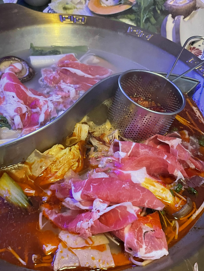 종각 훠궈맛집 청킹마마는 딱 기본적으로 홍탕, 백탕 이렇게 제공이 됩니다. 갠적으로 저는 훠궈나 마라탕 먹을때 늘 소고기로 선택했는데 이 날 훠궈박사님께서 양고기가 찐이라고 해서 양고기를 선택했어요. 역시 양고기 너무 맛있더라구요? 고기 퀄리티도 좋아서인지 양 특유의 잡내도 없고 홍탕, 백탕 모두 잘 어울리는 조화. 일단 탕이 끟어나자마자 사리들을 절반정도 넣고 고기를 조금씩 넣어서 먹었는데 너무 맛있었어요. 백탕은 뭐 워낙 국물이 진해서 맛있는데 홍탕은 향이 너무 쎼면 먹기 힘들어 하는 편이거든요. 근데 청킹마마 훠궈는 딱 한국인 입맛에 맞춘 정도라 매콤하고 자극적인 국물이 넘 맛있었어요.