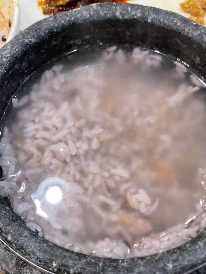 밥은 돌솥밥이라 미리 덜어놓고 이렇게 물을 부어서 숭늉으로 마무리해줍니다. 저는 돌솥밥에 불려먹는 숭늉 너무 좋아해서 완전 제 취향이였어요. 마무리까지 넘 갓벽헀던 해송쌈밥 , 영종도 깔끔한 쌈밥맛집 찾으신다면 꼭 방문해보셔도 좋을 해송쌈밥. 갠적으로 가족단위로 가기 넘 좋은 곳이라고 생각합니다 . 나올때 보니 김치랑 젓갈도 판매하고 있던데 밑반찬 자체를 잘 하는 곳이라 아마 호불호 없이 대부분 만족하실 듯 합니다.