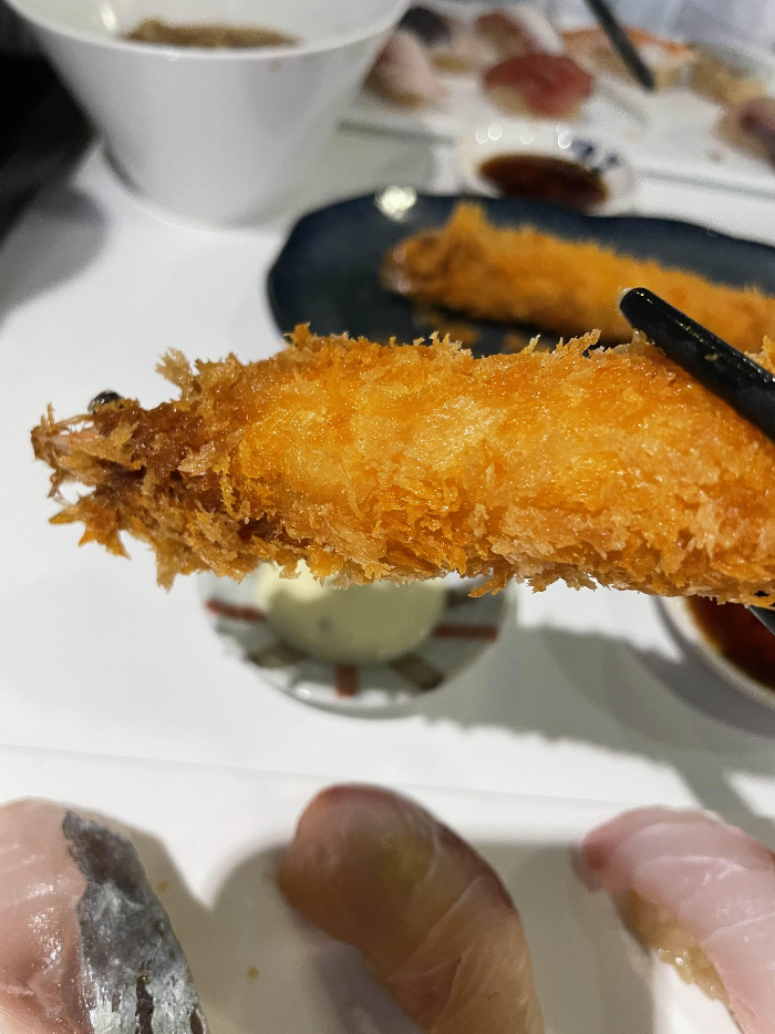 왕새우 튀김과 우동도 나왔습니다. 우동은 국물이 엄청 진해서 맛있었고 면발도 탱글하니 좋았어요. 왕새우 튀김도 두 피스가 나오는데 크기도 엄청 크고 바삭하고 부드러워서 식감 넘 좋았습니다. 갠적으로 우스시게는 깔끔하고 맛있게 한 끼를 먹을 수 있어서 만족하고 온 곳입니다. 꼭 저녁에 가서 제대로 초밥과 회 먹어보고 싶더라구요.
