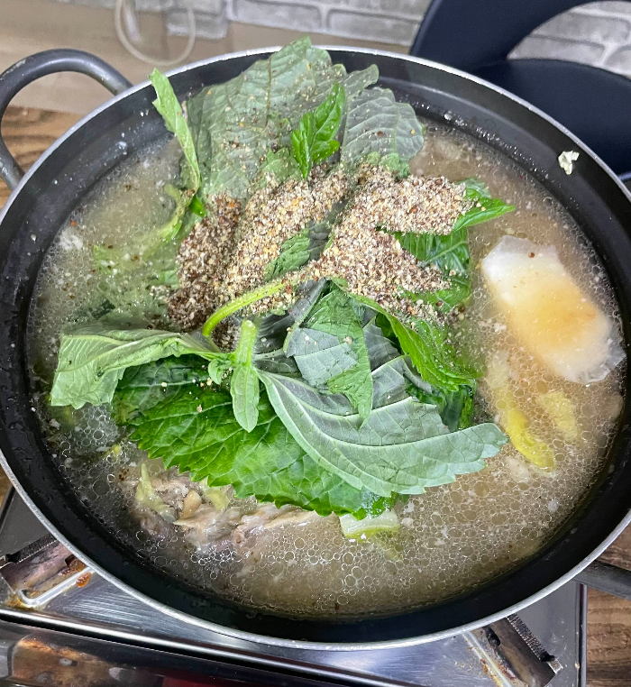 보쌈골목 맛집들의 특징은 보쌈을 주문하면 이렇게 감자탕이나 닭볶음탕을 서비스로 주신다는 점인데요. 흥부가는 서비스로 감자탕을 주셔서 보쌈이랑 넘 개운하게 먹을 수 있답니다. 감자탕은 자리 앉자마자 세팅되었는데 서비스라고 하기엔 양이 엄청 푸짐하고 많았어요. 그냥 딱 보기에도 퀄 너무 좋아보이죠? 국물도 진해서 맛있고 고기도 3-4조각이나 들어있어서 넉넉하게 먹을 수 있었답니다.