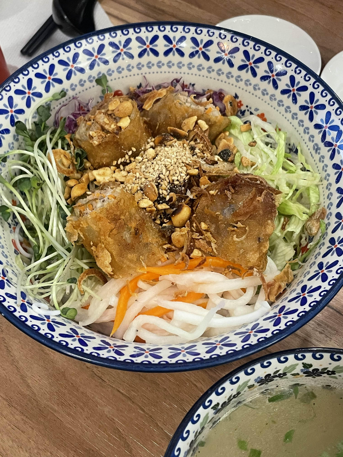 매번 양지쌀국수만 먹다가 새롭게 주문해본 비빔국수 , 진한 국물의 쌀국수도 맛있지만 비빔국수도 넘넘 맛있었어요. 야채도 듬뿍 들어있고 분짜에 올라가는 튀김까지 얹어주셔서 푸짐 그 자체, 피시소스가 같이 나와서 부어먹으면 되는데 새콤하고 맛있었어요. 참고로 비빔국수 주문하면 양지쌀국수 국물도 따로 나오기 때문에 완전 일석이조랍니다.
