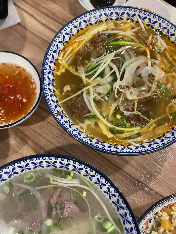 그리고 꼬옥 필수로 주문해야할 양지쌀국수와 매운쌀국수, 흐엉관 쌀국수는 국물이 진짜 너무너무 맛있답니다. 찐 현지느낌인데 국물이 엄청 진한데 딱 한국인이 좋아할만한 맛이에요 , 거기다 짜거나 자극적이지도 않아서 해장용으로 더할나위 없이 좋습니다. 매운쌀국수도 갈때마다 늘 시켜먹는 메뉴인데 진한 쌀국수 국물에 얼큰함이 더해서 확실히 더 개운하고 물리지 않습니다. 되도록이면 꼭 두 가지 쌀국수 다 시켜드셔보시길 추천합니다.