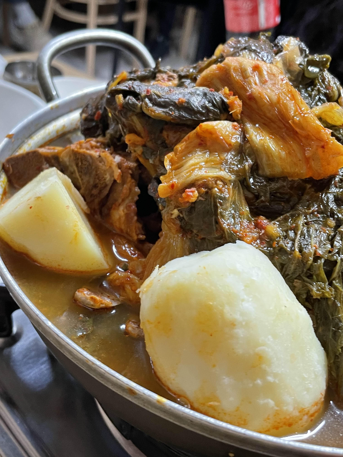 국내산 돼지등뼈가 들어간 감자탕은 비쥬얼부터 푸짐 그자체, 시래기도 완전 푸짐하고 감자도 통감자가 들어가 있어서 너무너무 맛있어보입니다.
