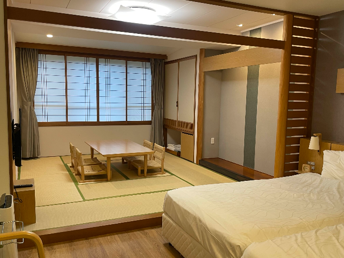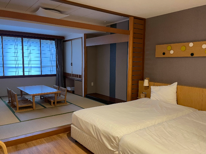 훗카이도 모리 노 소라니와 리조트 객실 리뷰해보겠습니다. 저는 가장 기본적인 스탠다드 룸이였는데 객실 자체가 굉장히 넓었고 화양실이라 다다미룸과 트윈룸이 섞인 그런 방이였습니다. 일본 호텔하면 대부분 방이 좁은 편인데 여긴 한 가족이 묵어도 될만큼 넓더라구요? 정말 편안하게 휴식이 가능한 공간이였어요.