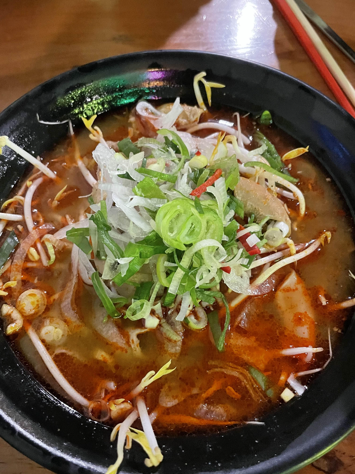 가장 먼저 나온 얼큰곱창쌀국수, 일단 푸짐한 양과 비쥬얼에 놀랐습니다. 사실 맑은 국물의 쌀국수 맛집이야 여기저기 많지만 얼큰한 곱창 쌀국수 잘하는 곳은 찾기 쉽지 않은데 경복궁 깜온은 매콤 곱창쌀국수 맛집이더라구요. 칼칼하지만 맵진 않은 진한 국물에 식감 너무좋은 숙주와 쌀국수면이 너무나 조화로웠답니다. 곱창도 꽤 많은 양 들어있었는데 냄새가 나지 않아서 잘 먹었습니다.