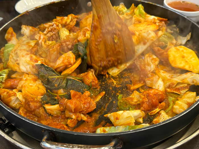 주걱으로 타지않게 뒤적뒤적 해주고 먹으면 됩니다. 평소에 닭갈비 좋아하는 편인데 인사동 오근내닭갈비 진짜 맛있었어요. 매콤하지만 너무 맵지 않고 딱 적당한 간의 닭갈비 양념에 닭고기 살도 엄청 부드러워서 계속 손이가는 맛이더라구요. 특히나 약불에 계속 익혀먹었더니 간이 점점 쎄져서 자극적인 걸 좋아하는 제 입맛에 아주 딱이였어요. 야채도 많아서 식감도 좋고 갠적으로 대만족 닭갈비였답니다.