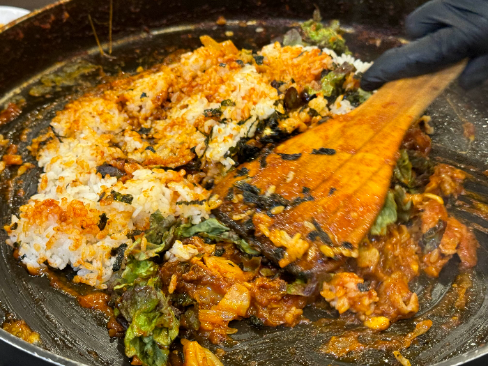 마무리로 볶음밥까지 클리어, 맛있는 닭갈비 양념에 김가루 듬뿍 얹은 볶음밥이 맛없을 수 없겠죠? 직원분이 맛있게 만들어 주시기 때문에 편하게 먹기만 하면 되는데 철판에 꾹꾹 눌러서 먹으니 너무너무 맛있었어요. 아무리 배불러도 오근내 오시면 볶음밥은 필수로 주문해드셔야합니다.