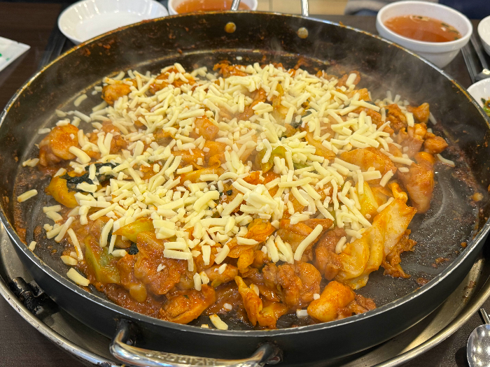 인사동맛집 오근내닭갈비 메뉴는 당연히 닭갈비 단일메뉴이지만 치즈, 고구마, 떡, 쫄면 등 다양한 사리를 판매하고 있습니다. 저희는 닭갈비에 치즈사리 추가해서 주문했어요. 사진엔 없지만 내부도 넓은편이였고 테이블도 많아서 부담없이 방문하기 좋겠더라구요.