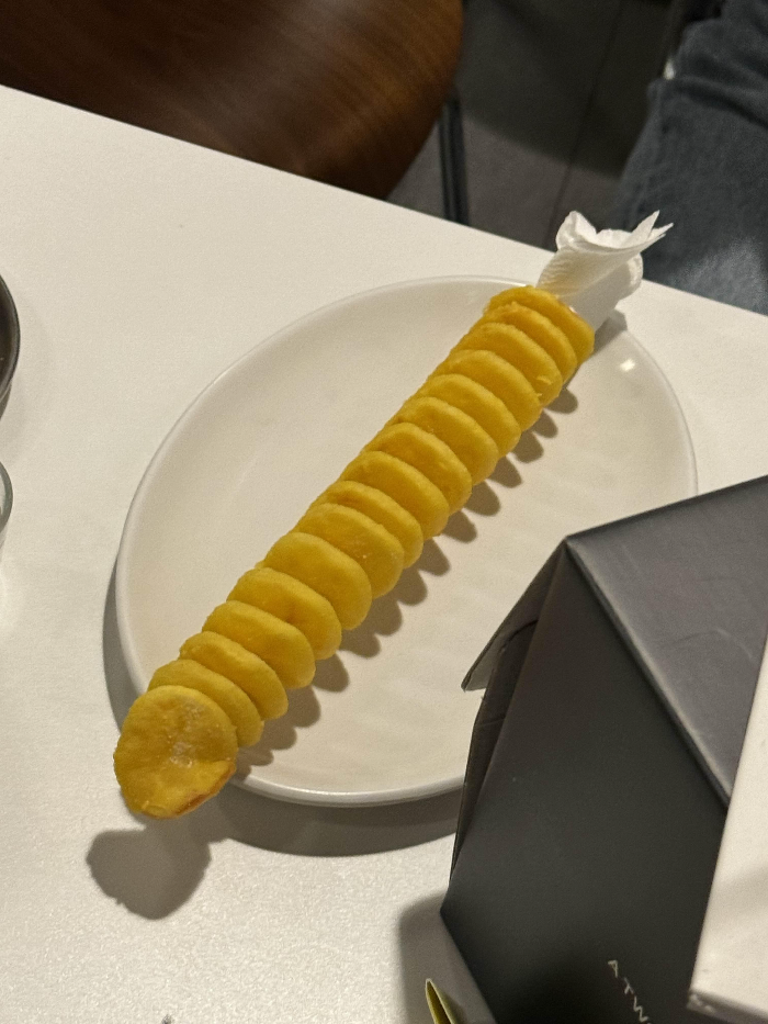 메뉴에 있길래 궁금해서 주문해본 회오리감자, 휴게소에서 늘 보이는 간식거리인데 요기서 보니 반갑네요. 의외로 고소하니 너무 맛있고 얼음생맥주도 같이 주문했는데 시원하고 넘 맛있었습니다.
