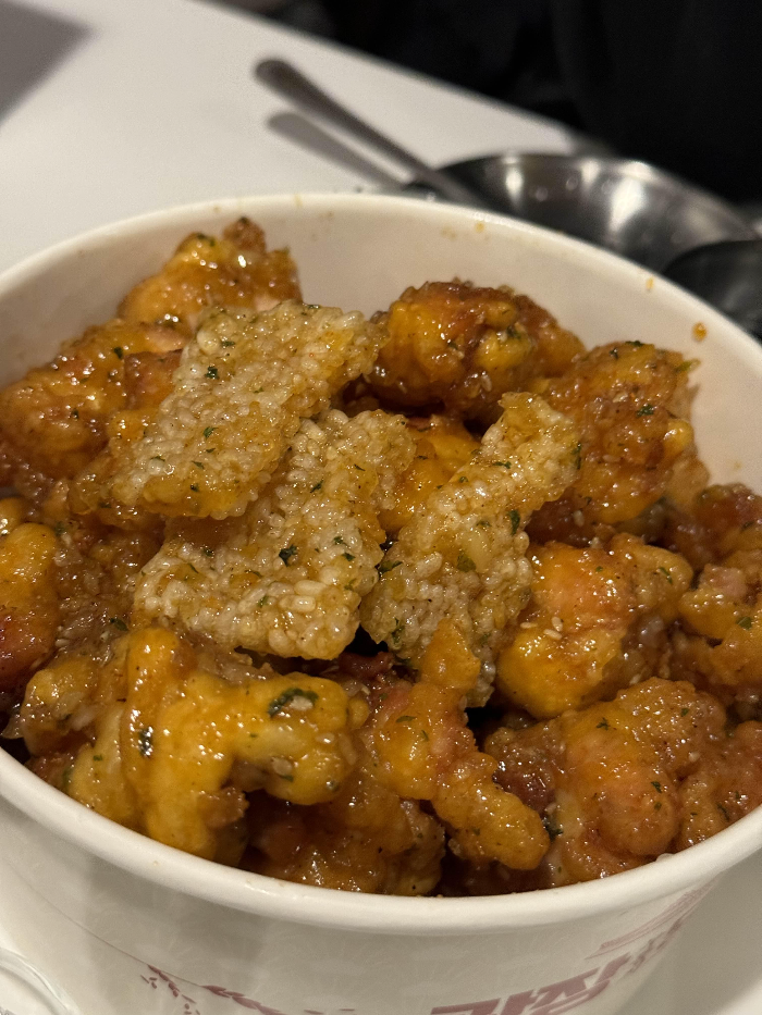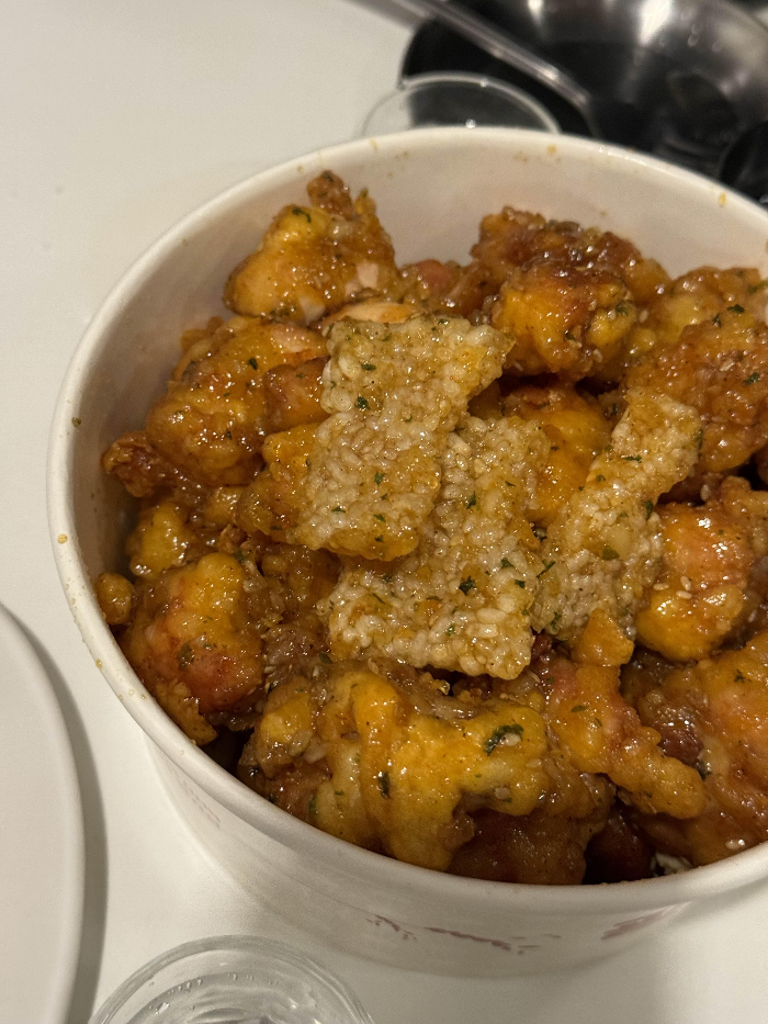 드디어 나온 닭강정, 마늘향이 듬뿍 입혀진 양념에 바삭한 누룽지가 얹어나와서 비쥬얼도 넘 좋습니다. 누룽지 식감은 쫀독하고 닭강정은 바삭 촉촉해서 조합이 너무 좋습니다. 닭강정은 당연히 맛있을거라 예상했지만 누룽지도 이렇게 괜찮을줄은 몰랐어요. 양도 꽤 많고 넷이서 2차로 요렇게 먹으니 간단하게 한 잔하기 딱 좋았습니다. 가까운 곳에 있다면 종종 포장도 해갔을 정도로 넘 괜찮았답니다.