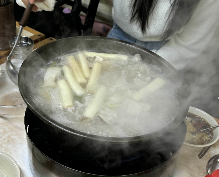 원할매 소문난닭한마리는 워낙 인기가 많고 사람도 많이 오는 곳이라 그런지 세팅도 빠른편이고 음식 나오는 속도도 빨라서 거의 앉자마자 밑반찬과 음식들이 준비가 되더라구요. 기본적으로 양념장도 1인 1개로 나오고 양배추와 겨자 , 다데기를 넣어서 기호에 맞게 간을 해먹으면 된답니다. 너무 팔팔 끓어서 맛있어보이는 비쥬얼이 사진에 잘 안담기는 닭한마리, 연기가 뿌옇게 올라오는만큼 정말 뜨끈한 국물이 속이 쫙 풀리는 맛이더라구요. 안에 닭도 푸짐하게 들어있고 떡사리도 완전 말랑 쫄깃하고 갠적으로 넘 만족스러웠답니다. 특히나 그냥 먹어도 맛있지만 간장양념 소스에 찍어 먹으면 훨씬 맛있었어요. 날 더워지기 전에 쌀쌀할 때 먹기 딱 좋은 닭한마리국물, 저는 여러 맛집에서 닭한마리 많이 먹어봤는데 원소닭은 진짜 맛있는 편에 속하는 닭한마리맛집이였습니다.