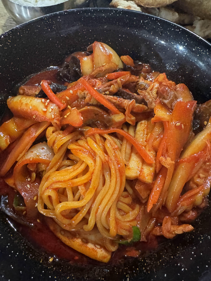 어마어마한 간짬뽕 비쥬얼, 매운단계도 선택할 수 있는데 저는 2단계 선택한 것 같아요. 근데 생각보다 훨씬 맵기 때문에 저같은 맵찔이 분들은 무조건 1단계하시길 추천합니다. 나오자마자 불향이 확 나는데 와 진짜 맵겠구나 생각했고 각종 해산물과 야채가 듬뿍 들어있어서 양도 푸짐하다 싶었어요. 국물이 거의 없이 자작한 간짬뽕은 너무 특색있어서 한번쯤은 꼭 와봐도 좋을 만한 곳이라고 느껴졌어요.