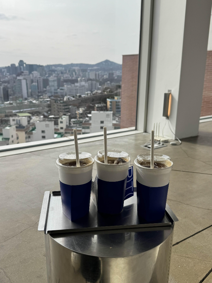 남산타워가 한 눈에 보이는 테르트르 뷰 , 완전 시야가 탁 트인 넓은 전경에 커피 한 잔 하면 딱 힐링하기 좋겠죠? 카페 자체가 테이블이 많진 않고 딱 뷰 보기 좋게끔 만들어져 있어서 사람 많을 시간은 피해서 방문하는게 좋겠더라구요. 저는 낮에 방문했지만 왠지 야경 보러 오면 더 좋을것 같은 테르트르 , 커피 가격대는 7천원으로 저렴하진 않았지만 이런 뷰를 보면서 먹을 수 있는 커피라 아깝다고 느껴지진 않았습니다.