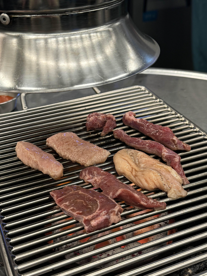 적당한 양으로 조금씩 구워서 먹어주면 됩니다. 부위별로 골고루 구워먹는데 윤기좔좔 너무 맛있어보이죠? 저는 특히나 갈매기살과 뽈살 너무 좋아해요. 돈주리 부속고기는 잡내가 거의 없고 고기 질도 좋아서 갠적으로 자주 올만한 이유가 있는 곳이랍니다. 거기다 사진엔 없지만 슴슴한 간의 콩나물 무침과 부속 고기 찍어먹을 매콤소스가 같이 나오는데 이 조합덕분에 부속고기가 특히나 맛있는 듯 합니다. 양이 정말 많아서 먹어도 먹어도 끝이 없었지만 끝까지 맛나게 먹었답니다. 갠적으로 막창이랑 몇 가지 부위는 좀 질긴 편이라 부위별로 선택해서 먹는걸 추천합니다.