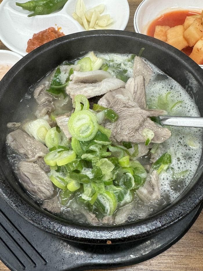 원흥 순대국맛집 홍이순대국은 밑 반찬으로 나온 김치도 넘 맛있어서 순대국 맛을 극대화 시켜주더라구요. 숟가락으로 대충 휘저어봤는데 고기 양 엄청납니다. 국물도 국물이지만 순대국은 내용물이 푸짐해야 한다는 주의라 너무 만족스러웠어요. 고기도 넘 부드러워서 좋았습니다.