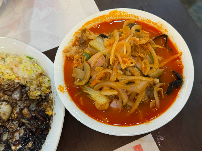 다음은 차돌박이짬뽕 , 역시나 곱빼기 주문해서 양은 먹어도 먹어도 줄지 않을정도로 많았습니다. 기본적으로 양자강은 음식 양이 많은편인듯 하니 되도록이면 곱빼기보단 일반 시키는게 낫겠더라구요. 해물과 야채 , 차돌박이가 듬뿍 들어간 양자강 차돌짬뽕은 다른곳에 비해 국물이 진짜 맛있었고 깔끔하더라구요. 이왕 기다린 김에 왕갈비짬뽕 꼬옥 먹어보고 싶었는데 너무 아쉬웠어요. 담엔 꼭 도전해보고 싶을 정도로 짬뽕이 존맛탱이였습니다.