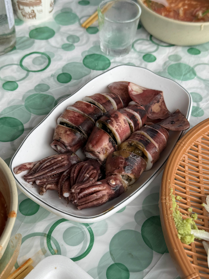 마지막엔 시킬까말까 고민했던 오징어통찜, 고민한 시간이 아까울 정도로 제일 맛있었던 메뉴입니다. 두 마리 주문했는데 한 마리는 서비스로 주셨고, 식감이며 맛이며 통찜 너무 괜찮더라구요.