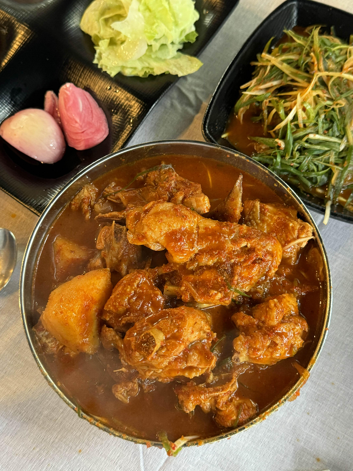 들어가는 입구부터 팔팔 끓고 있는 닭볶음탕들이 눈에 띕니다. 지나가는 것 만으로도 너무 뜨겁던데 이 더위에 끓여주시는 분들 너무 대단해요. 암튼 너무 맛있어보이는 비쥬얼에 잘왔다 싶은 생각이 들었고 안쪽 식당으로 들어갔어요.