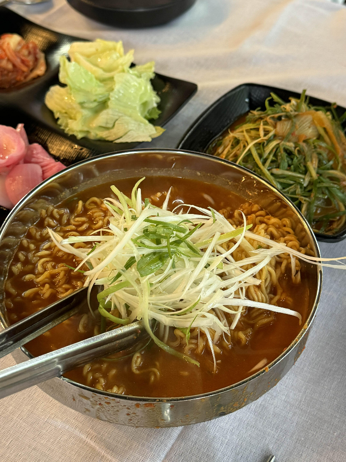 라면사리는 꼭 처음에 주문하셔야 해요, 중간에 추가주문이 어렵기 때문에 사리2개 주문했는데 푸짐 그 자체. 독특하게 닭볶음탕보다 라면사리가 먼저 나와요. 팔팔 끓고 있는 닭볶음탕 국물에 라면을 끓여주시는거라 약간 에피타이저 느낌? 꼬들꼬들한 면에 매콤하니 진한 닭볶음탕 국물이 너무 잘 어울리고 맛있더라구요. 라면 사리는 꼭 시켜드셔야 합니다.