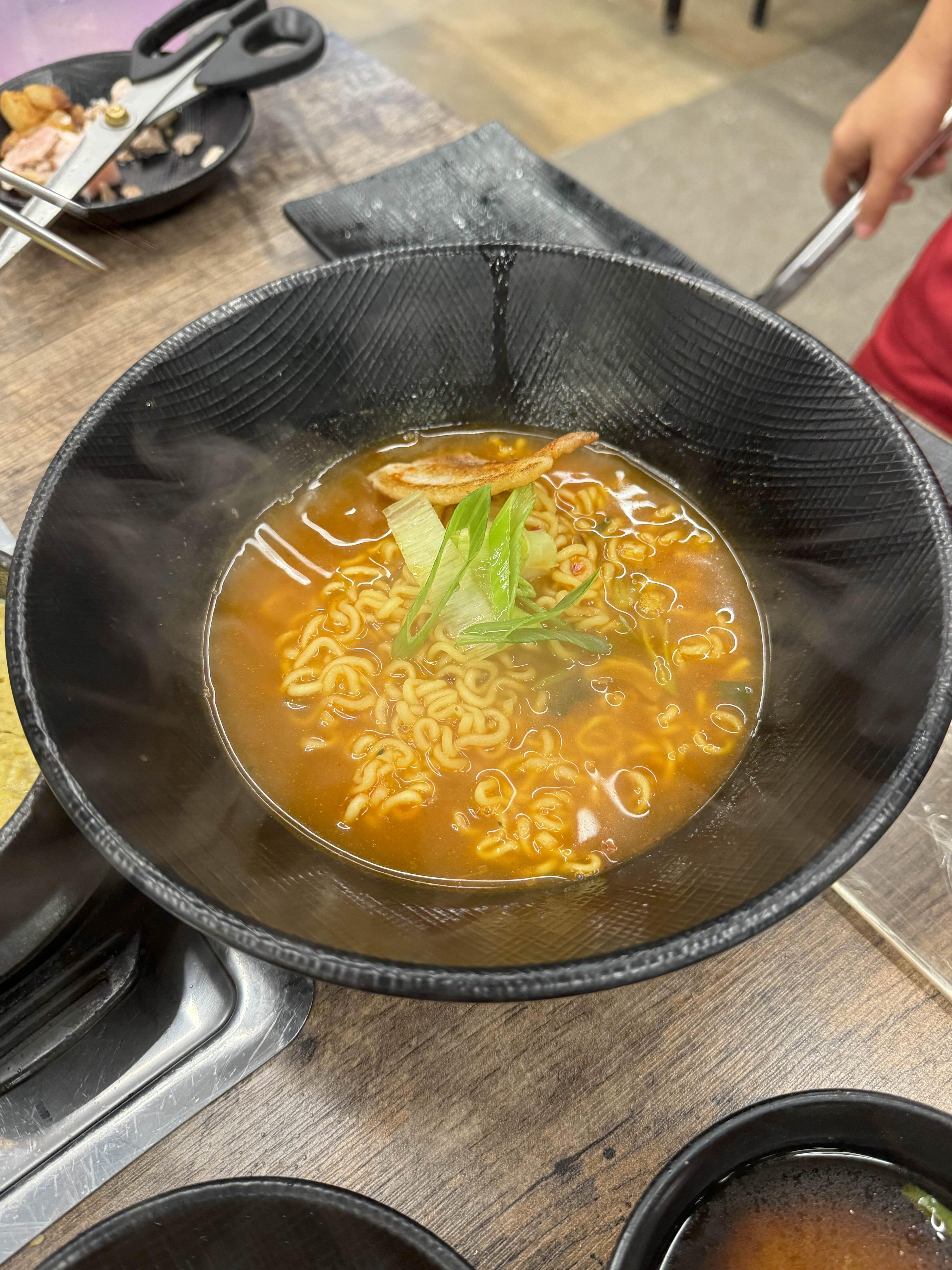 마무리는 라면, 미리 구워놓은 삼겹살도 얹어 먹었더니 행복 그 자체. 라면까지 완벽했던 세부한식맛집 삼겹살롱.