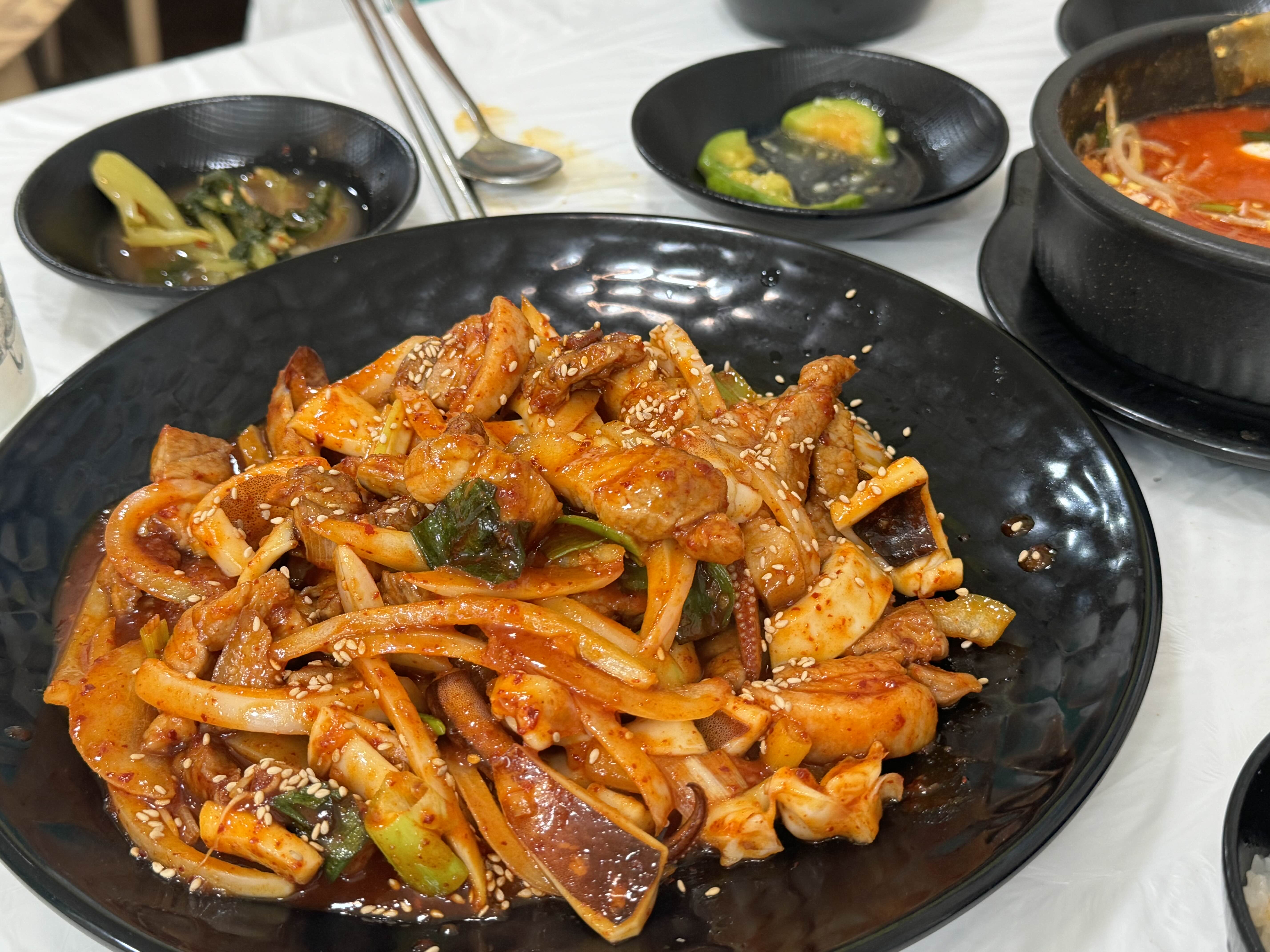 속이 허했는데 찌개만 먹긴 아쉬워서 주문해본 오삼불고기 , 나오는데 비쥬얼과 냄새만으로도 이미 맛있을것이 예상 가더라구요. 요건 술 안주로도 딱인데 못 참고 소주 한잔 살짝 했다는거? 달달한 양념이 베이스인데 매콤함도 중독성있는 맛이라 밥 반찬으로도 술 안주로도 딱입니다. 특히나 오징어와 고기가 두툼한 편이라 식감도 좋았어요.
