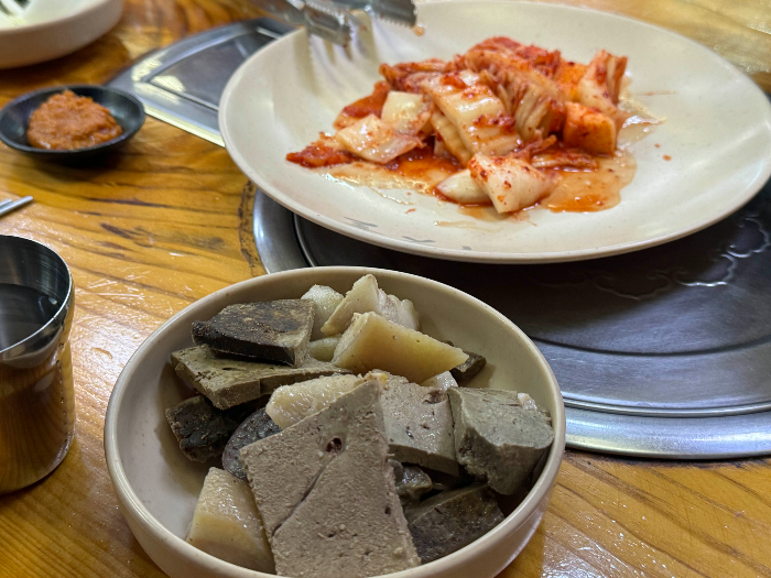싸릿골 순대국만의 대박 장점은 바로 순대를 무한리필로 먹을 수 있다는 점, 내장까지 푸짐하게 먹을 수 있어서 너무 좋았어요. 이 순대도 리필을 직원분이 해주시는게 아니라 김치 등 반찬 가져다먹을 수 있는 셀프코너에 솥 채로 놓여있기 때문에 눈치보지 않고 부담없이 먹을 수 있답니다. 다만 남길 경우 환경 부담금이 있으니 욕심은 부리지 말아야겠죠?