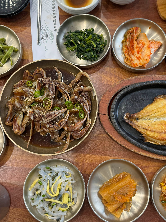 드디어 나온 푸짐한 정식 , 뽈락구이와 간장게장 각 1인분씩 주문했는데 생각했던 것 보다 양이 엄청 푸짐합니다. 기본 찬 가짓수도 많고 맛도 너무 괜찮았어요. 평소 안먹던 나물도 여기선 많이 먹을 정도 , 거기다 메인인 뽈락구이 생선살도 많고 간도 좋아서 밥 반찬으로 딱이었어요. 간장게장은 뭐 말할것도 없고 맛있는데 양도 푸짐해서 대만족이었답니다.