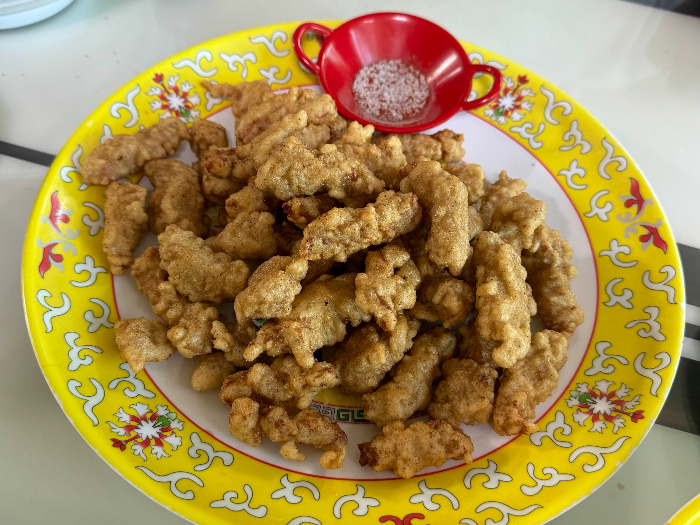 파주 문산 은하장 꼬옥 다시 와야한다고 생각한 바로 그 메뉴, 고기튀김입니다. 사실 시킬까 말까 고민했는데 요거 안먹었으면 은하장에 큰 임팩트가 없을 뻔 했어요. 늦게나마 주문했는데 탕수육은 아니고 두툼한 돼지고기에 튀김옷이 얇게 묻혀진 메뉴인데 다른 양념소스 없이 소금에만 콕 찍어먹으면 된답니다. 진짜 한 입먹고 와.. 소리 절로 나올만큼 맛있더라구요? 이미 고기튀김 자체에 간도 잘되어있는데다 소금까지 찍어먹으면 더 맛있어요 . 이건 나중에 포장해가서 술 안주로 먹고 싶을 정도로 너무 또 생각나는 맛이더라구요. 은하장 고기튀김은 꼭 조만간 또 먹으러 가야겠습니다.