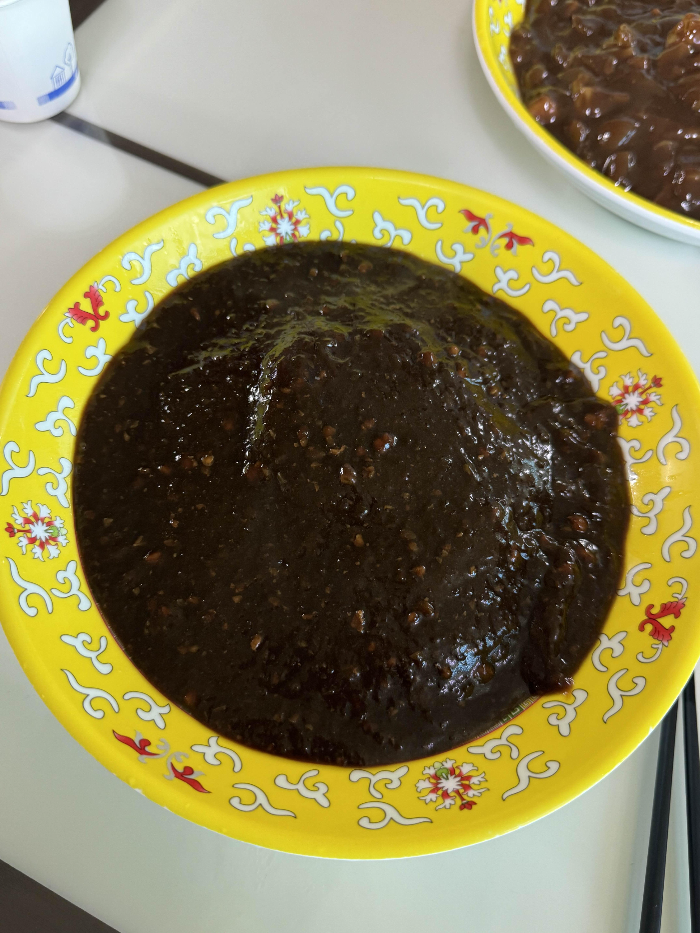 제가 주문한 유니짜장 먼저 등장 , 유니짜장은 일반짜장과 다른 점이 고기가 씹히는게 아니라 다 갈아서 나오기 때문에 훨씬 부드러운 식감에 묽은 소스에요. 오히려 면에 짜장소스가 더 잘 섞여서 갠적으로는 유니짜장 극 호 였답니다. 그리고 일반 짜장면에 비해 살짝 매콤한 맛이 있어서 물리지않고 훨씬 맛있게 먹을 수 있었어요 . 전 담에 와도 유니짜장 시켜먹을 듯 합니다.
