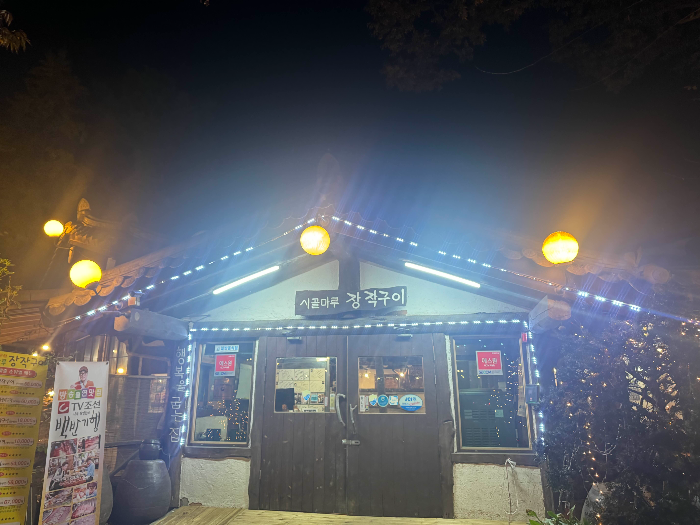 완전 시골감성 제대로인 시골마루 장작구이 외관 , 밤 10시까지 영업하는 곳이라 이 근방에서 여유있게 저녁 먹고 싶을 때 가기도 좋습니다. 식객 허영만의 백반기행에도 나온 적 있는 곳이라는데 뭔가 분위기부터 딱 맛집 느낌 , 메뉴는 메인 오리장작구이와 삼겹살 장작구이 그 외에도 오리 양념 주물럭이나 오리백숙도 판매하고 있습니다.