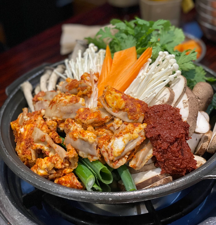 특히나 너무너무 맛있었던 중앙해장 곱창전골 양념장, 이 빨간 양념이 곱창전골 맛의 비결인듯 한데 너무 맵지도 너무 자극적이지도 않은데 중독되는 맵칼한 맛이 넘 만족스럽더라구요. 맛없을 수가 없는 비쥬얼의 곱창전골을 팔팔 끓여줍니다