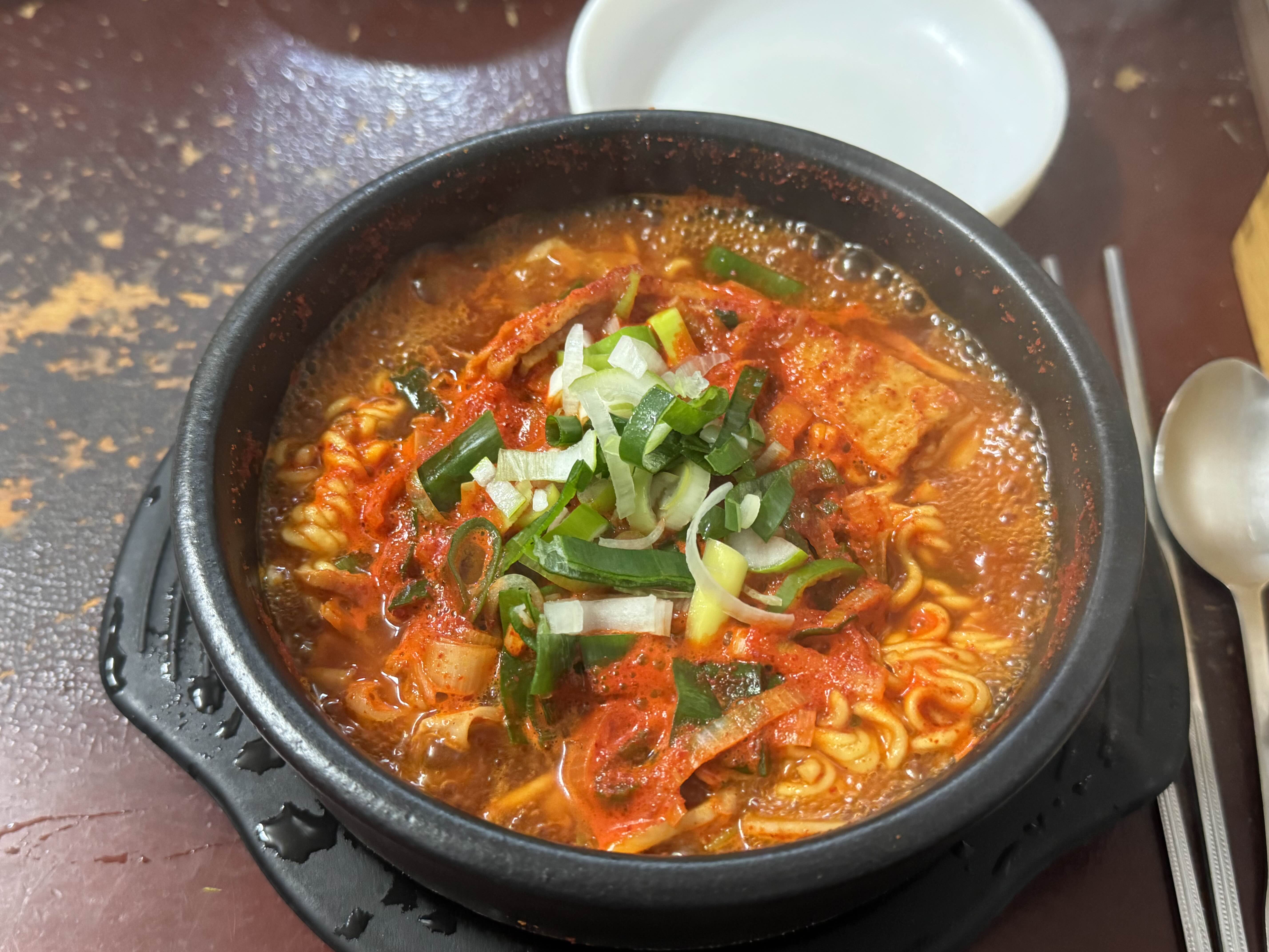 북촌 맛집 경춘자 라면 땡기는 날 저는 시그니처 메뉴인 짬뽕라면 주문했습니다. 맵찔이는 덜 매운맛 먹어도 힘들기 때문에 당연히 덜 매운맛 선택, 예전에 호기롭게 매운 맛 먹었다가 죽을뻔한 기억이 있기에 덜 매운맛. 근데 워낙 맵기로 유명한 라면이라 짬뽕라면 자체도 굉장히 매워요. 다만 맛있게 매운 맛이기 때문에 중독성도 장난 아니라는 점, 국물도 진짜 맛있는데 살짝만 덜 매웠음 어떨까 싶은 생각도 듭니다. 하지만 이 매운맛이 경춘자 라땡 짬뽕라면의 매력이죠
