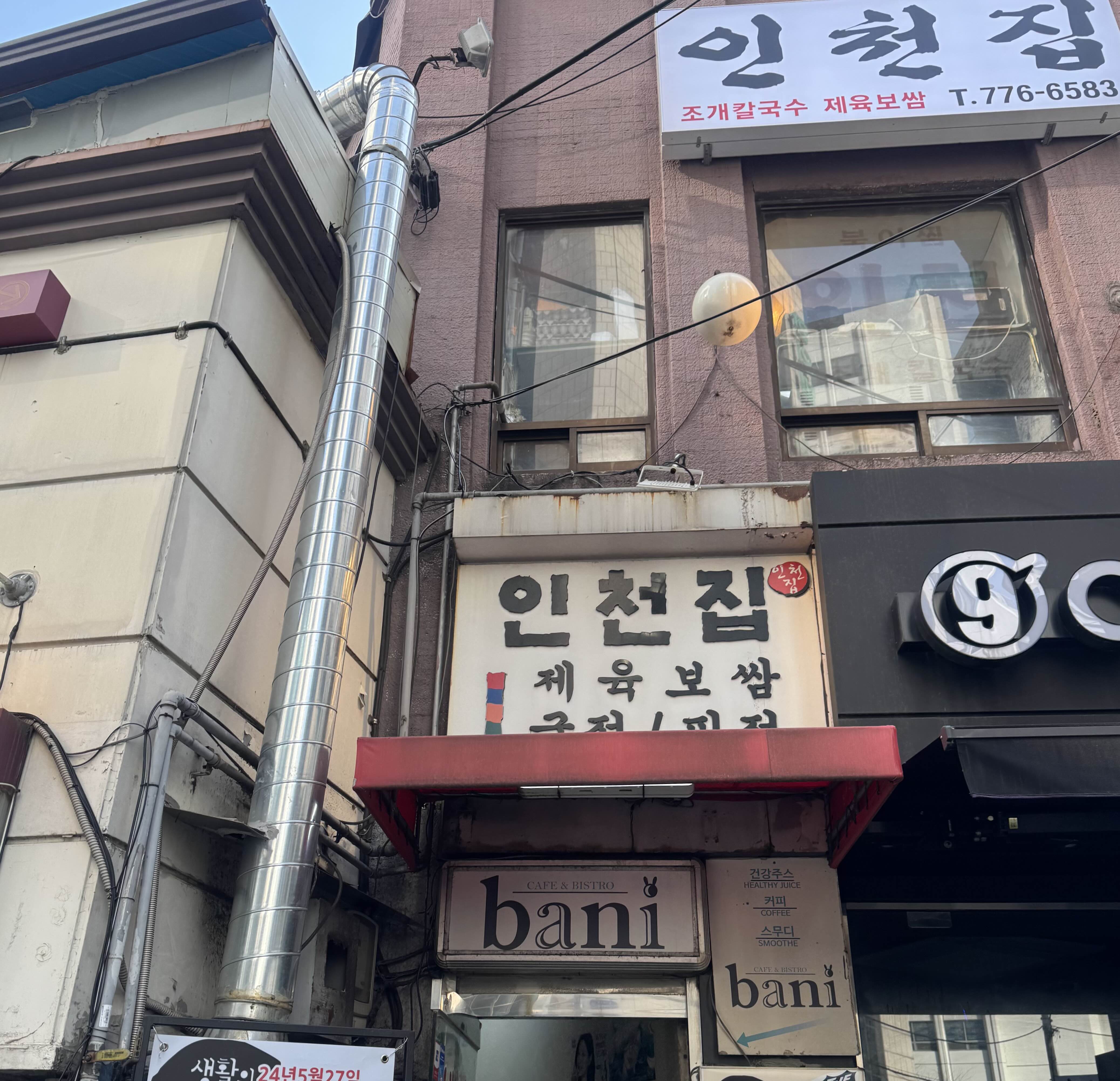약속 장소로 을지로입구를 정하고 가려던 식당을 다 정해두었는데 방문하니 문을 닫은 상황, 어딜 가야하나 싶었는데 바로 옆에 인천집이라는 제육보쌈&칼국수 맛집이 있더라구요. 간단하게(?) 한 잔 하기 딱 좋은 메뉴라 고민없이 방문해보았습니다.