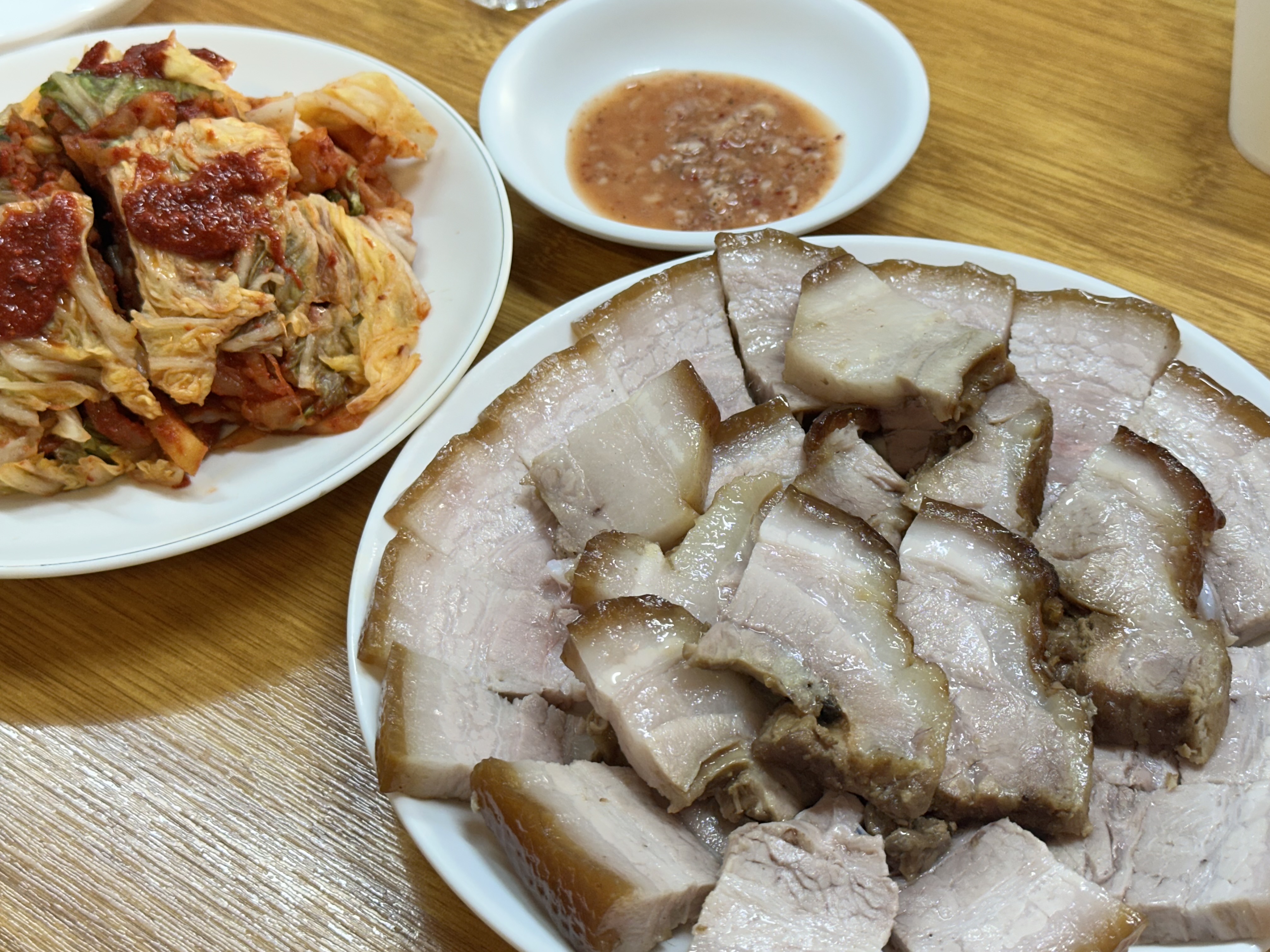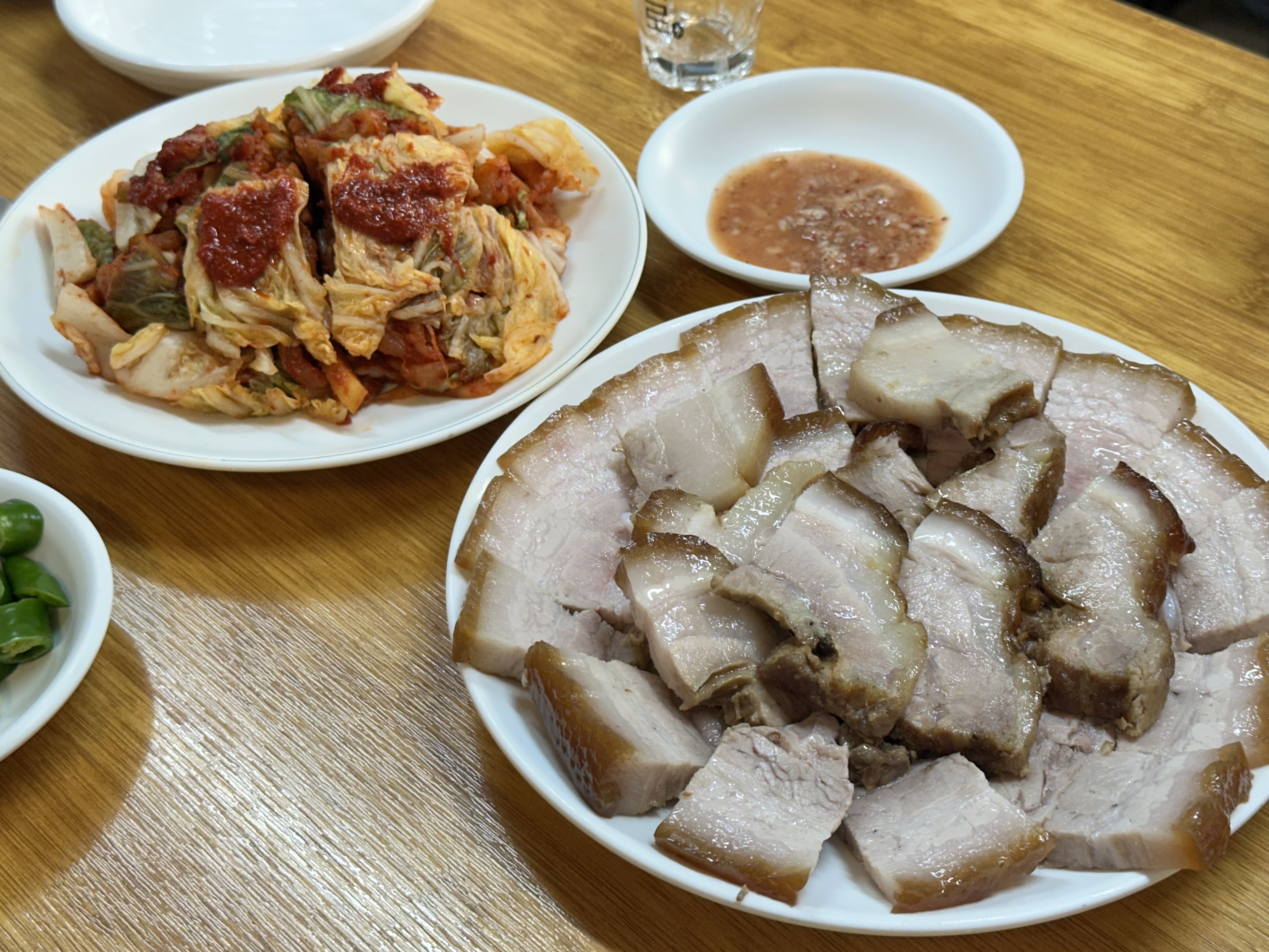 주문한 제육보쌈 나왔습니다. 윤기 좔좔 미쳤죠? 양이 많진 않은데 두툼하게 썰려있어서 은근 배가 찬답니다. 탱글탱글하고 식감이 너무 좋았고 거기다 조금은 투박해보이던 김치가 너무 맛있어서 합이 미쳤다고 생각한 기억이 있습니다. 잡내도 없이 깔끔해서 호불호 없이 누구나 좋아할만한 맛이라 을지로 보쌈맛집 찾으시는 분들께 추천할만한 곳입니다.