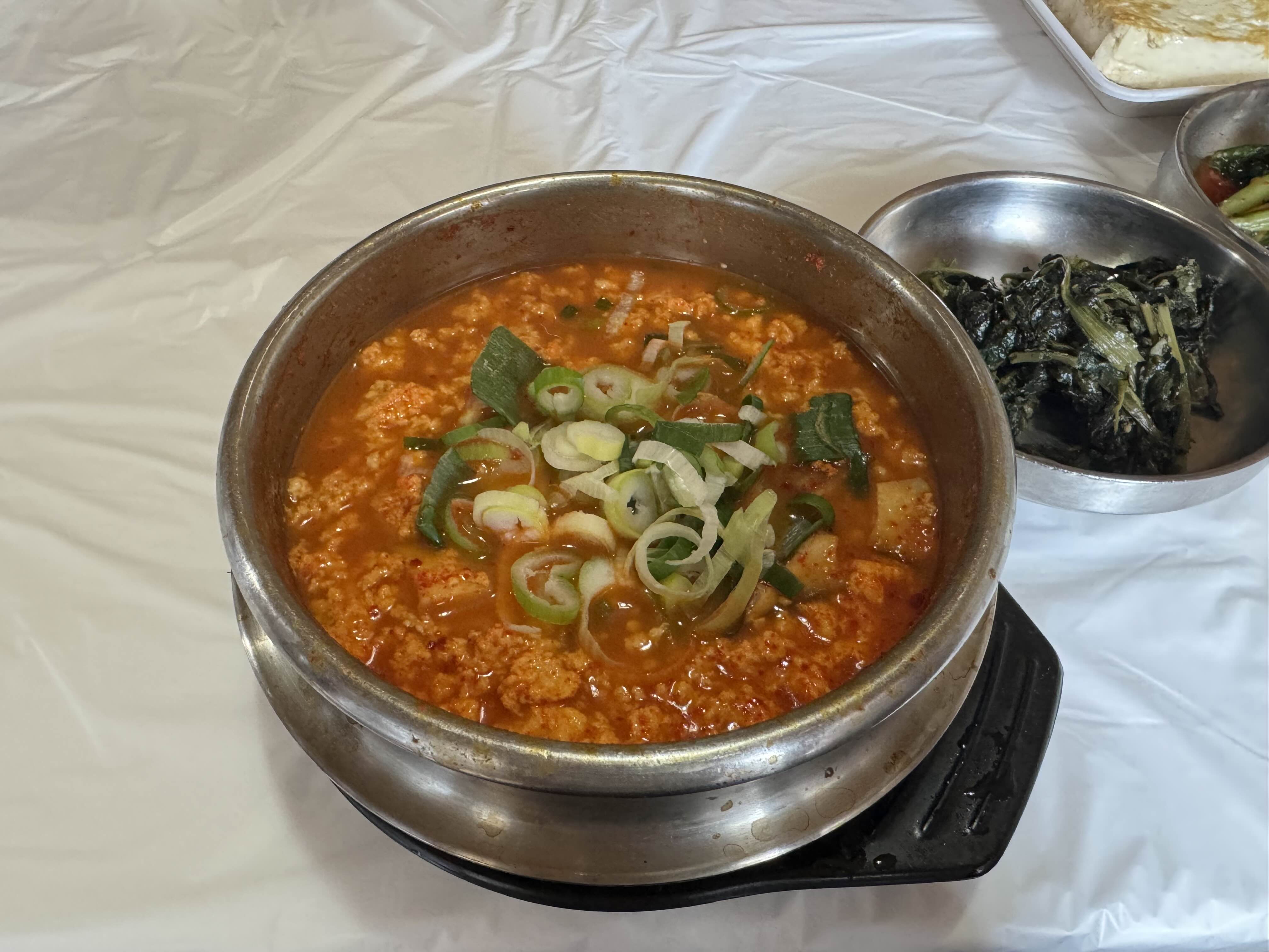 저는 얼큰순두부로 선택, 보기에도 얼큰해보이는 진한 붉은 국물에 몽글한 순두부가 가득 올라가있습니다. 해산물 베이스라 국물에 깊은 감칠맛이 있고 해장용으로도 좋은 딱 적당히 얼큰한 맛. 갠적으로 극호였습니다.