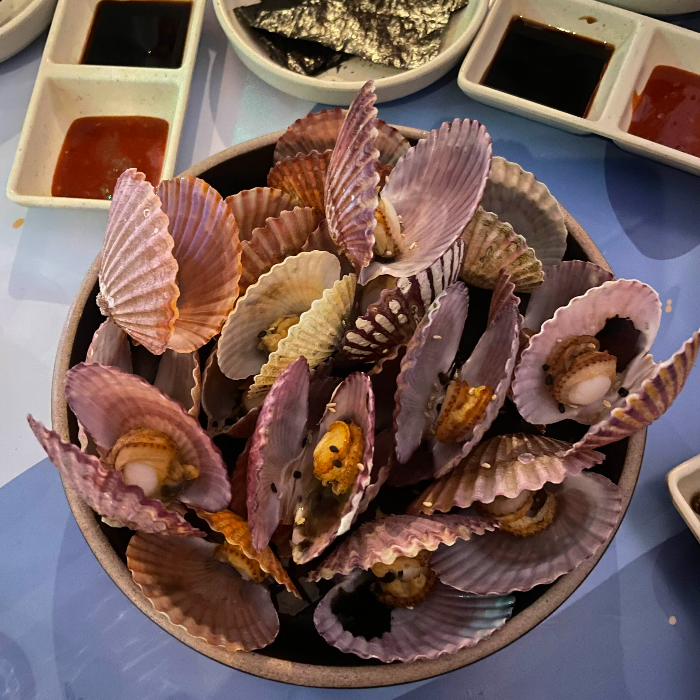 가장 먼저나온 홍가리비찜, 한정수량으로 제공되는 메뉴라고해서 고민없이 시켜보았는데 큼지막한 가리비가 아니라 아쉬웠어요. 그치만 넘 맛있었다는 점? 가격이 저렴한 편은 아니라서 아쉽지만 본 메뉴 전에 에피타이저(?) 겸으로 먹기 좋은 메뉴였어요 . 비교적 다른 메뉴가 좀 늦게나오는 편이긴 합니다