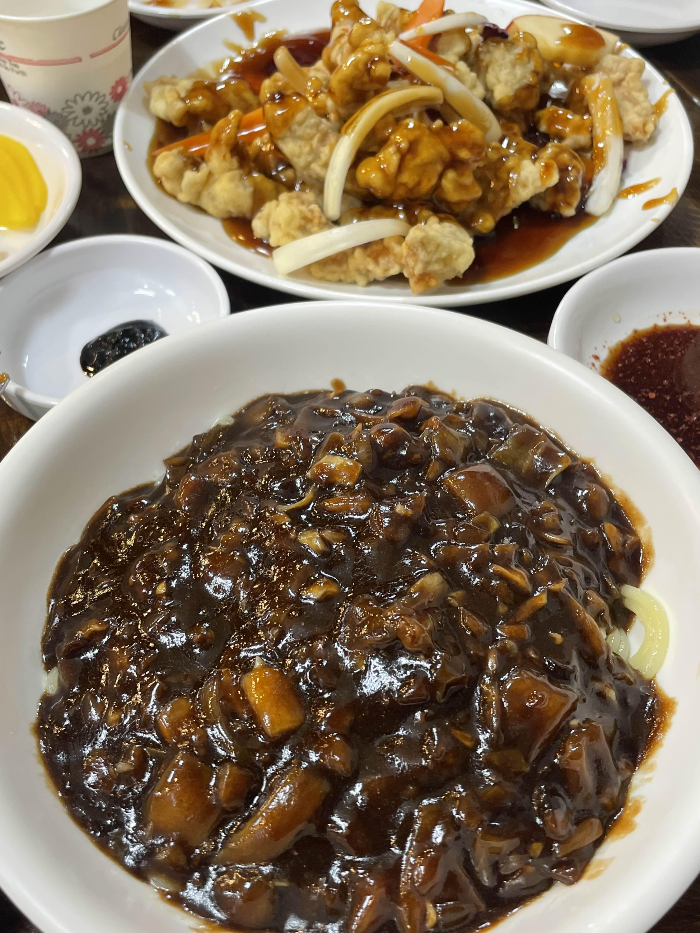 뒤이어 나온 윤기좔좔 짜장면, 진짜 딱 옛날 자장면 비쥬얼인데 제가 요즘 찾던게 요런 자장면이라 넘 반가웠어요. 요즘 중국집 가도 자장면 , 짬뽕 가격이 만원 가까이 올라온 상황인데 이 집은 딱 6천원. 점심 한끼 가성비좋게 그리고 맛있게 먹을 수 있다는 점이 특 장점 아닐까 싶어요. 느끼하지 않은 자장면 소스가 양도 많아서 면 다 먹고 밥 비벼먹어도 좋겠다 싶을 정도였어요. 이 위에 고춧가루 뿌리면 매콤하니 더 맛있겠는데 저는 본연의 맛이 더 좋아서 요렇게만 먹어보았답니다.