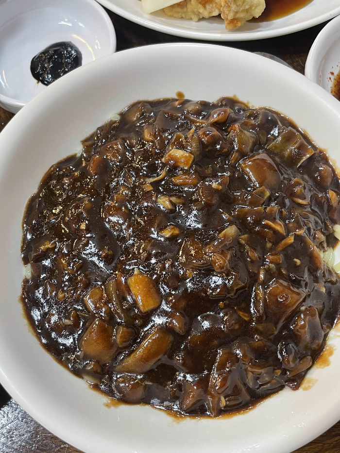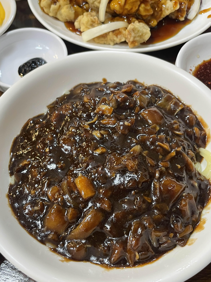뒤이어 나온 윤기좔좔 짜장면, 진짜 딱 옛날 자장면 비쥬얼인데 제가 요즘 찾던게 요런 자장면이라 넘 반가웠어요. 요즘 중국집 가도 자장면 , 짬뽕 가격이 만원 가까이 올라온 상황인데 이 집은 딱 6천원. 점심 한끼 가성비좋게 그리고 맛있게 먹을 수 있다는 점이 특 장점 아닐까 싶어요. 느끼하지 않은 자장면 소스가 양도 많아서 면 다 먹고 밥 비벼먹어도 좋겠다 싶을 정도였어요. 이 위에 고춧가루 뿌리면 매콤하니 더 맛있겠는데 저는 본연의 맛이 더 좋아서 요렇게만 먹어보았답니다.