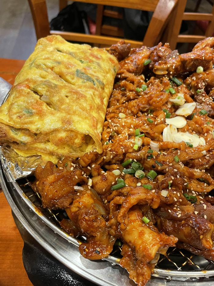 필수로 같이 주문해야하는 화육계 몬스터계란말이, 아무래도 닭발 족발이 많이 맵기 때문에 계란말이랑 꼭 같이 먹어줘야합니다. 특히 닭발 양념이 굉장히 진하고 꾸덕한 편이라 처음에 안매워도 점점 매운맛이 강하게 느껴지는데요 , 계란말이랑 같이 먹으니까 매운맛이 중화되어서 훨씬 먹을만 하더라구요. 특히나 계란말이 양이 엄청 많아서 만족스러웠어요.