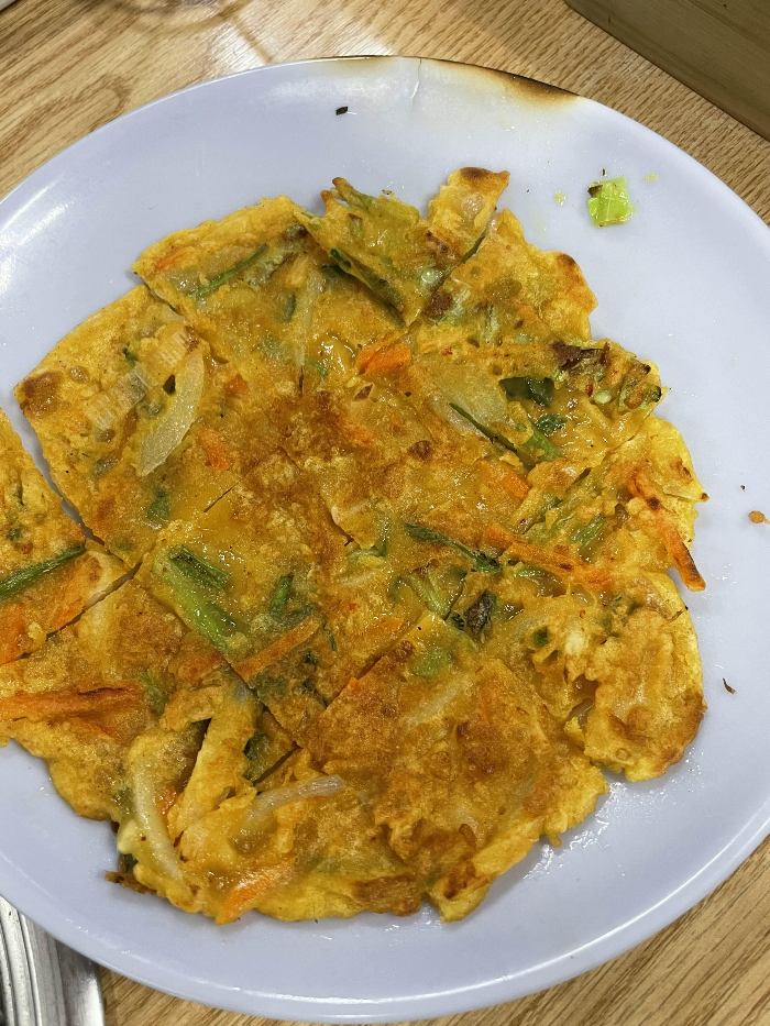 그리고 또 대만족 포인트, 기본 찬으로 부침개가 나오는데 카레 베이스 부침개라 훨씬 맛있었어요. 바삭하니 부드러워서 술 안주로도 넘 좋았답니다. 추가하려면 3,000원인데 솔직히 양이 적진 않아서 충분했어요