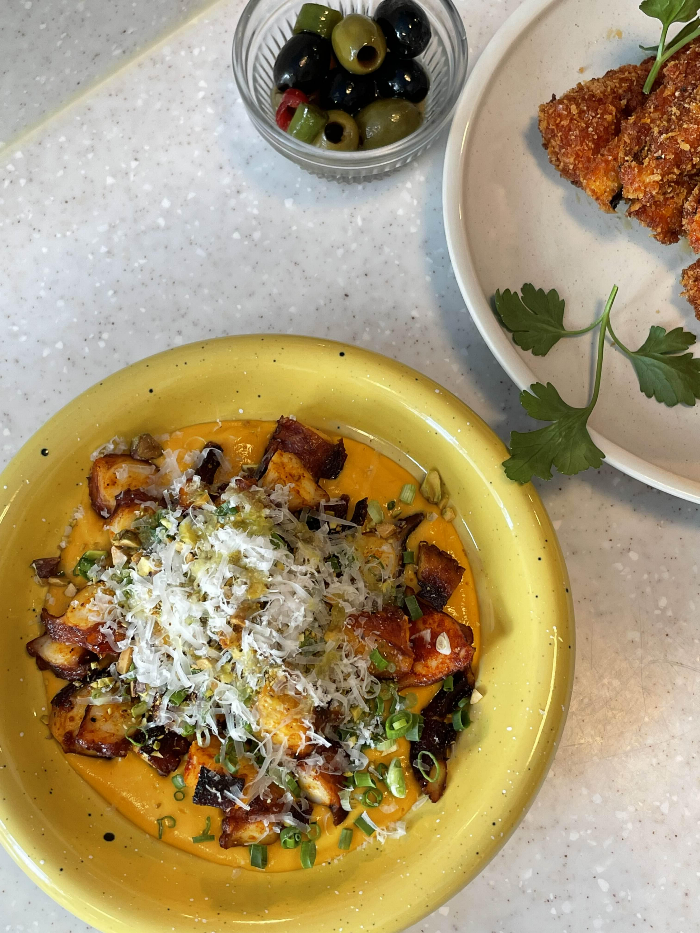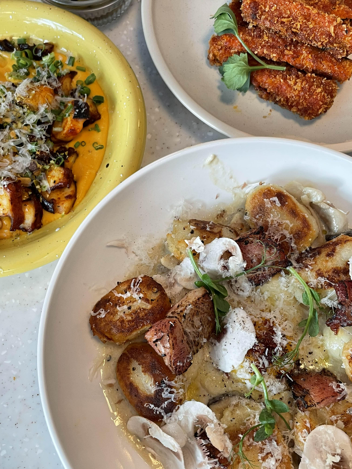 성수맛집 쿠나 메뉴는 많은 편은 아니였고 파스타나 당근퓨레 뇨끼종류가 있었어요. 저는 포르치니 베이컨크림뇨끼 , 버터시즈닝 문어당근퓨레, 가지튀김 주문했습니다