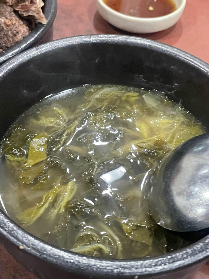 가격대가 좀 있었던 꼬리곰탕 , 갠적으로 큼지막한 고기가 많이 들어있어서 그런지 곰탕보다 맛있었어요. 파도 길게 썰어있어서 식담도 좋았고 고기가 많이 들어가서인지 국물도 곰탕보다 훨씬 진한 편 . 비싸긴 하지만 그만큼 값을 하는 메뉴였어요