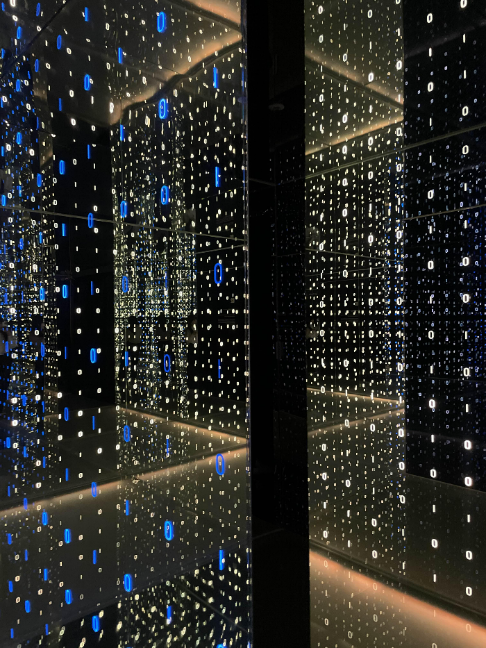 입장하자마자 거울과 불빛이 가득한 공간이 나왔어요. 성수 로그아웃 전시는 특징으로 내부가 어두운 공간이 꽤 많아요. 넘어지지 않게 바닥 조심히 걸으셔야 할 듯 해요. 아무튼 첫 공간이 너무 화려해서 예뻤어요