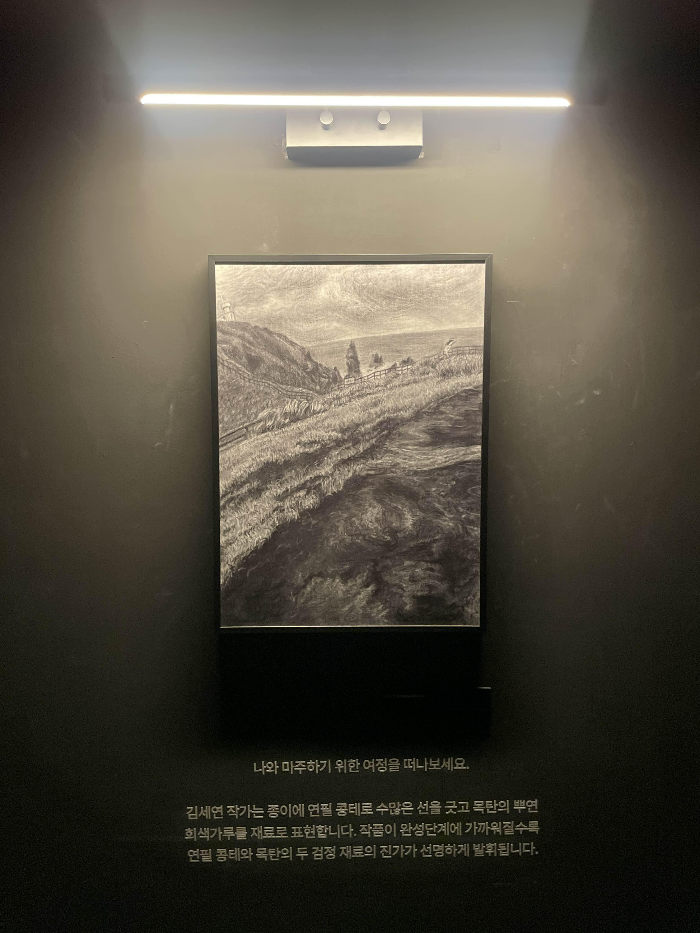 성수 로그아웃은 현실에서 벗어나 나의 내면에 집중해보는 시간을 가지라는 의미의 전시에요. 나와 마주하기 위한 여정이라는 김세연 작가의 작품으로 시작되어 현실 속에서 잃어버린 감각을 일깨우고 나 자신과 마주하는 시간을 가질 수 있는 경험이였습니다.