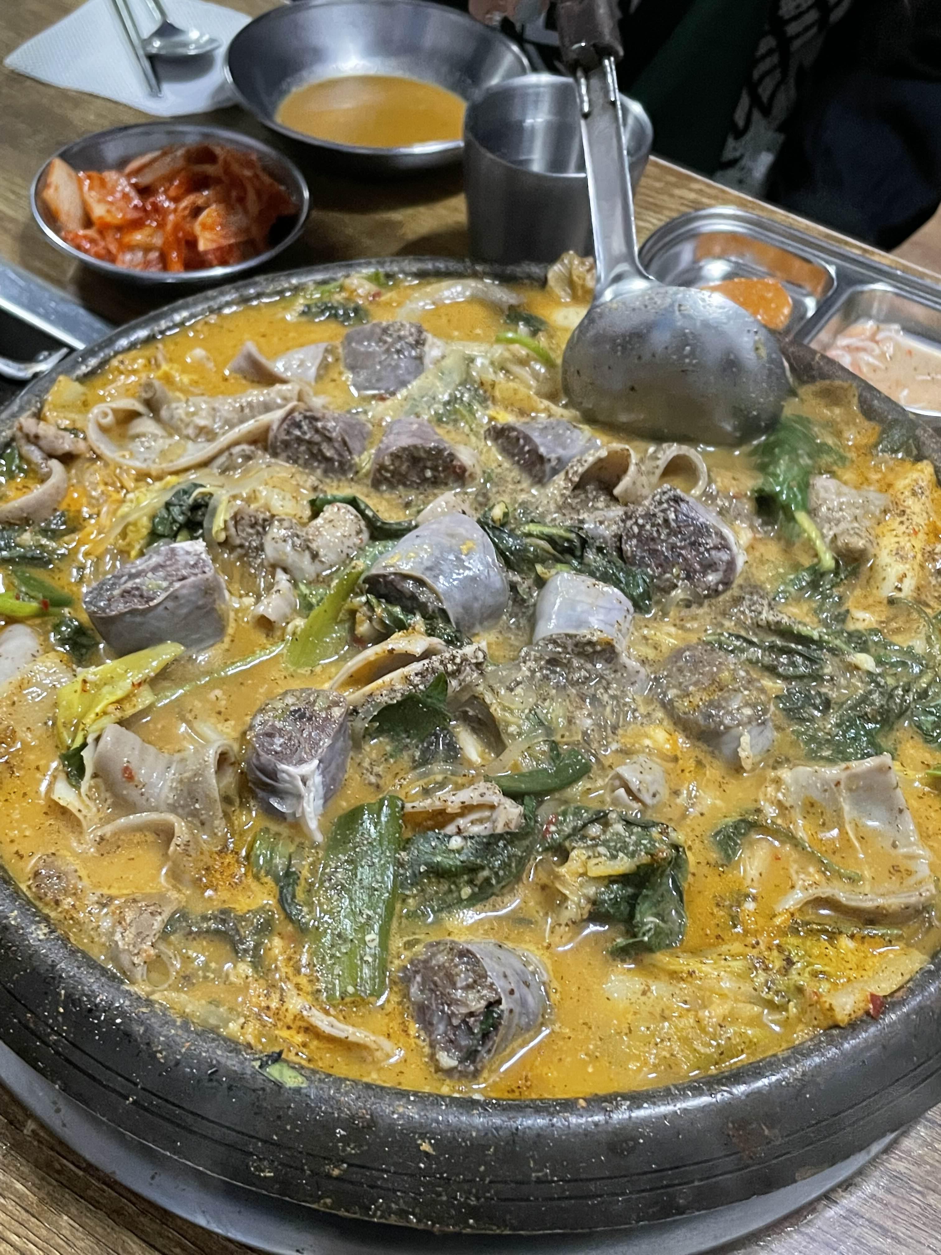 끓어날수록 더 맛있어지는 이경문 순대곱창전골 , 사실 직원분들이 친절하다거나 시설이 좋다거나 하지도 않는데 왜 자꾸 다들 재방문하지 싶었는데 그냥 맛있는게 정답이였습니다. 중독성있는 국물 맛에 순대와 곱창에서도 잡내가 전혀없이 맛있었어요. 평소 곱창전골 잘 못드시는 분들도 도전해보셔도 좋을 듯 합니다